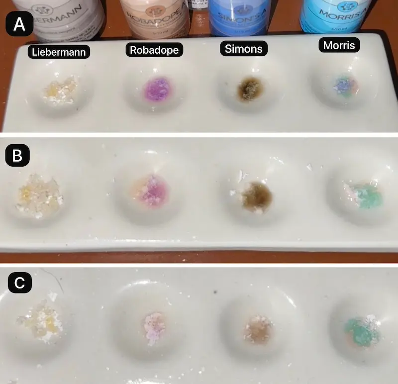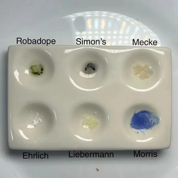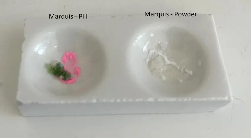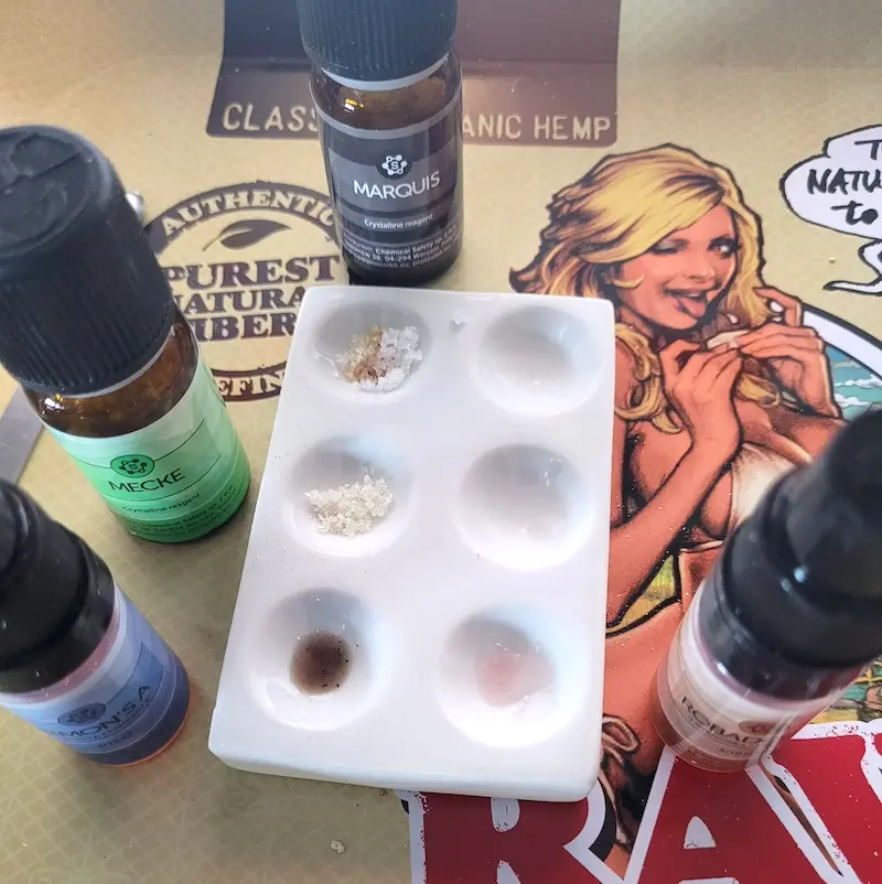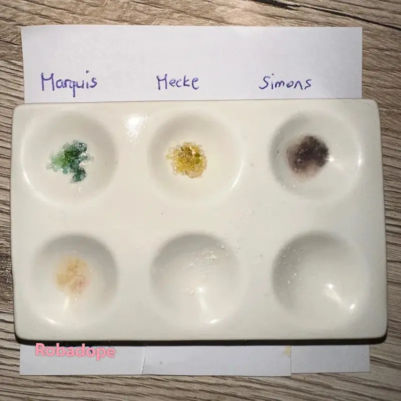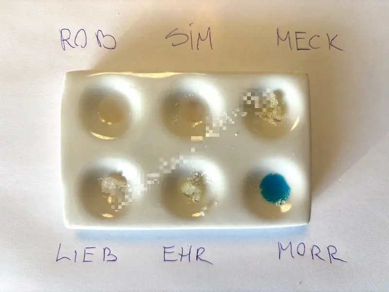 Nadesłane przez badaczy wyniki testów udostępniamy jako dodatek do naszych poradników, filmów i aplikacji. Wyniki będą się różnić w zależności od zanieczyszczenia próbki, ilości, oświetlenia, temperatury, ekspozycji na powietrze, przechowywania oraz jakości i degradacji reagentów. Zawsze używaj różnych testów aby zwiększyć precyzję. Pozytywny lub negatywny wynik nie oznacza, że substancja jest bezpieczna. Żadna substancja nie jest w 100% bezpieczna. Badaj substancje przed zażyciem. Sprawdź narkotest.